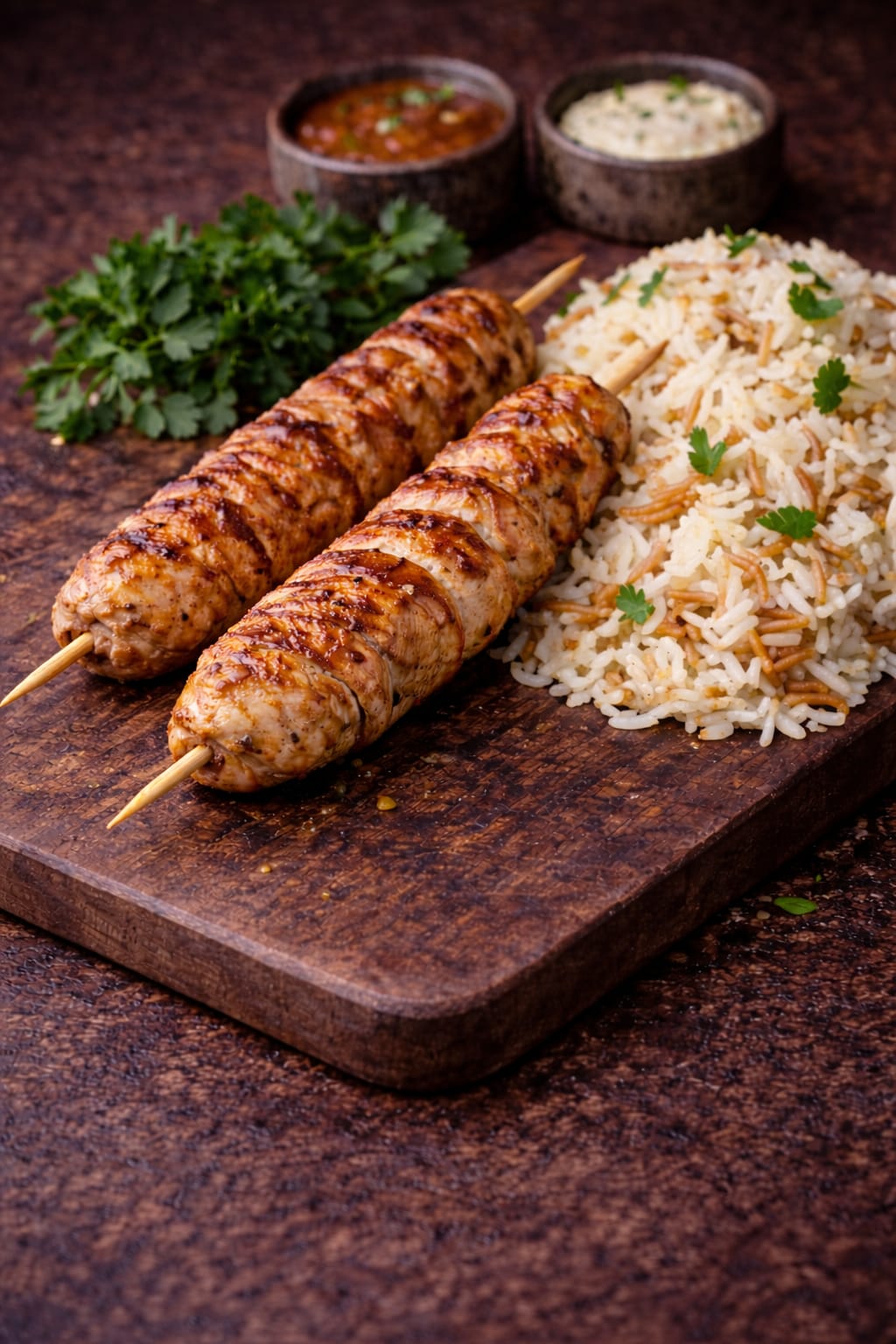 2 Brochettes de poulet mariné, accompagnées de son riz vermicelles