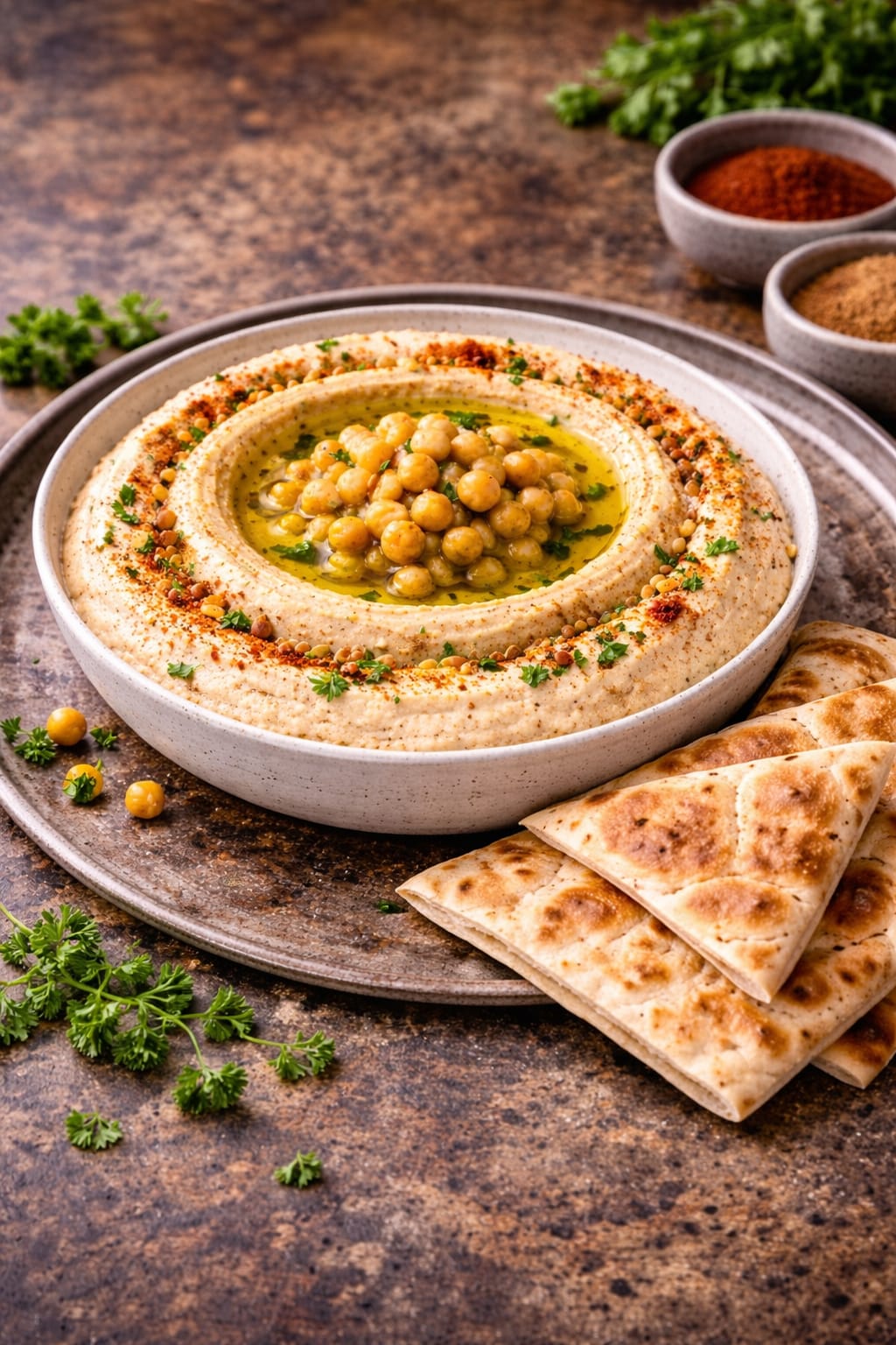 پوره نخود، کرم کنجد، آبلیمو و روغن زیتون.